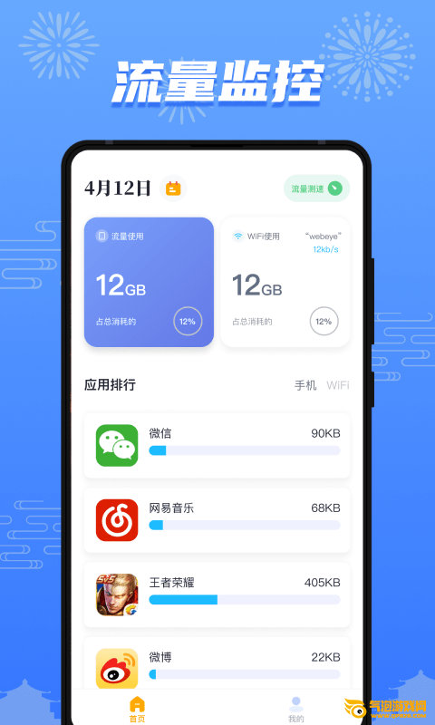 2.流量列表,统计各APP每日流量使用明细,提高数据流量使用效率,合理规划流量使用