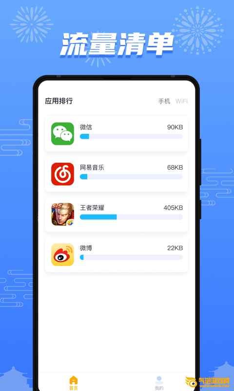 3.对每个应用的移动网络和wifi网络流量进行统计排序。