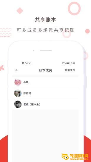 共享记账,适用于业务记账、生活记账、出差记账、出差记账、学生记账、学生台账、亲子台账、装修记账、个人记账、日常记账、家庭台账等。请邀请家人、同事、朋友、同学一起管理账本,让它更容易!