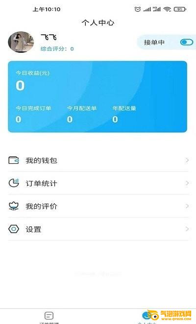 3.每天的订单收入可以在个人中心看到,包括今天的收入,订单完成情况等等,非常清楚。