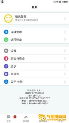 2.设置-拖到界面底部,将显示应用软件版本、设备固件版本和设备的IMEl号。3.支持多张卡的设备将显示多个IMEl号码。