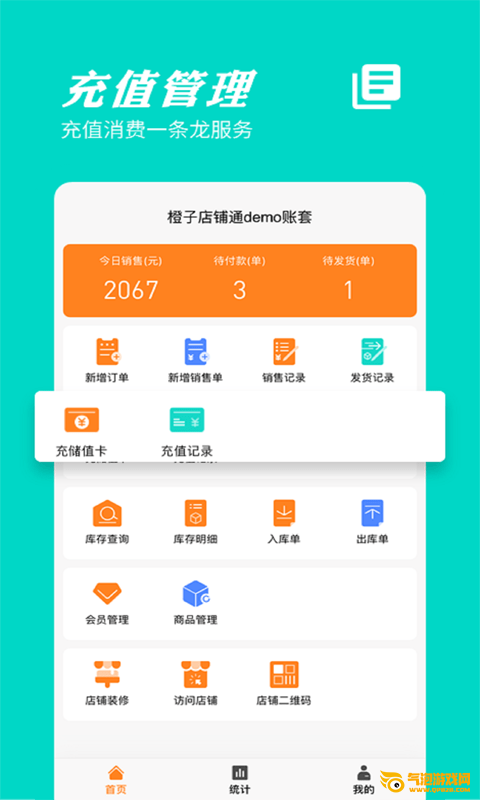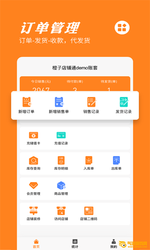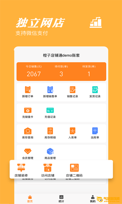 橙店app,店铺管理更轻松;订单管理,订单-发货-收款,代发货;实时盘点,随时随地盘点;充值管理,充值消费一站式服务;独立网店,支持微信支付。