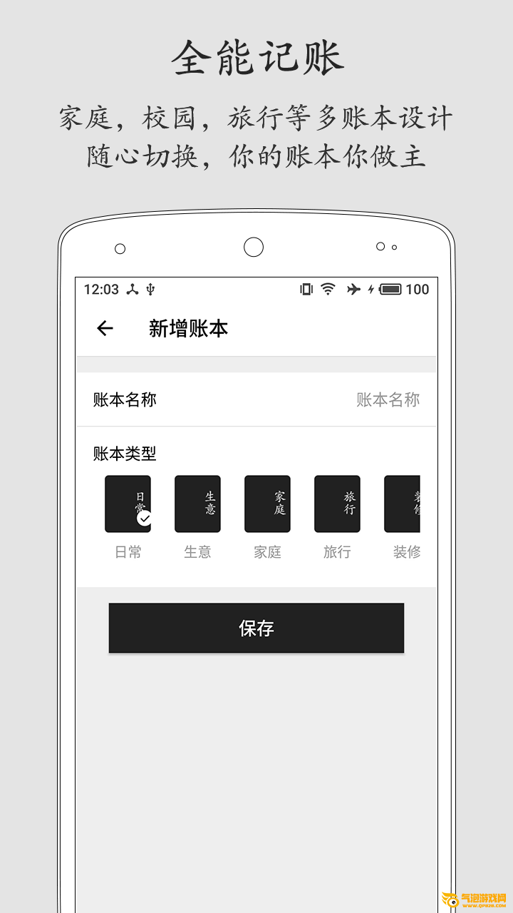 多种记账场景:日常、家庭、商务、旅行、装修.总有你的账本