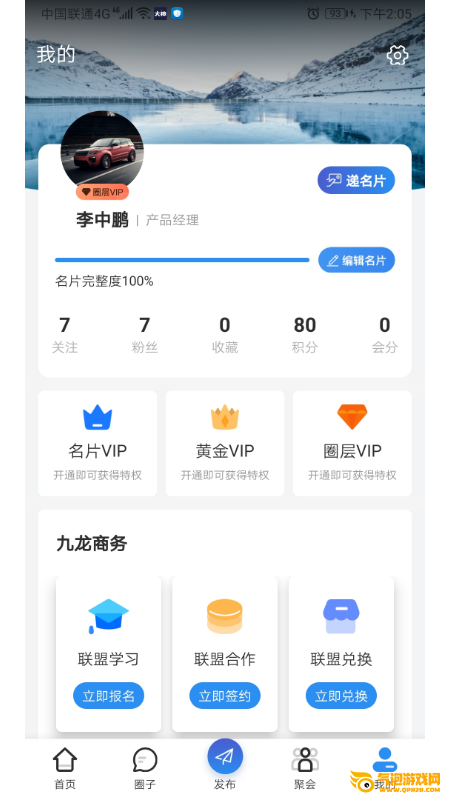 4.分享和传递名片。九龙联盟app提供便捷的名片投递功能,可以投递自己的名片。