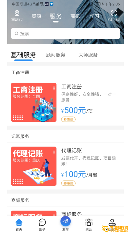 九龙联盟app涵盖基础服务、咨询服务、主服务类别;
