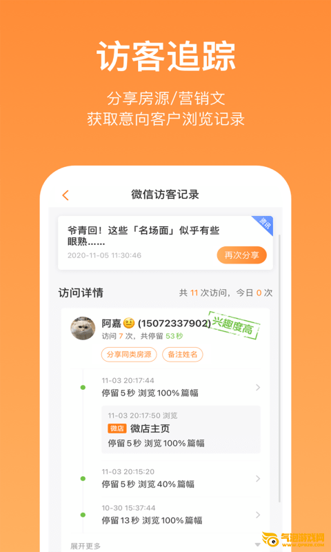 微信推房子,实时动态跟踪访客。