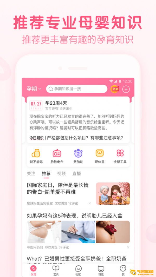 【有专业科学的怀孕知识】孕妈妈的变化,胎儿的发育,宝宝的成长,可以帮助你消除各阶段的疑惑和不解。