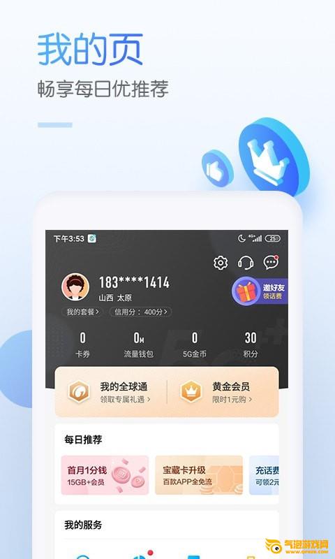 4.我的页面优化,侧重于常用服务和快捷操作;