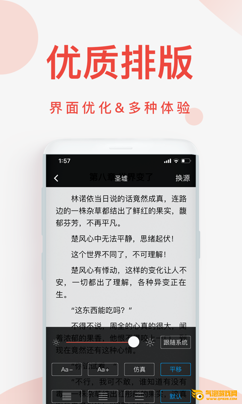 5.功能丰富!丰富多彩的主题,模拟翻页,智能书签,个性化阅读设置,享受精彩阅读。