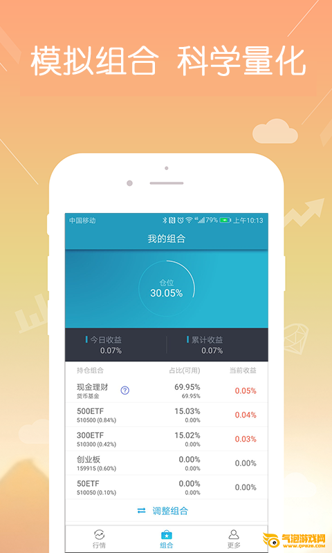 Etf组合宝手机版是专业的理财平台。ETF组合宝app提供丰富的理财技巧。用户可以通过ETF组合宝app在线学习,迅速成为大款财神。ETF组合宝app支持网上交易,很多奖励都在不断更新。免费提现快。欢迎免费下载ETF组合宝app。