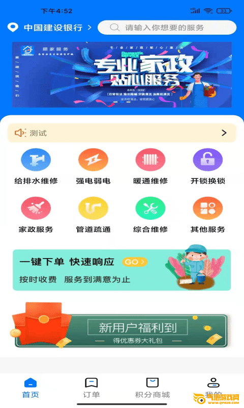 家庭服务app是一个专业的上门安装维护服务平台,涵盖给排水维护、强弱电维护、暖通维护、综合维护、钻孔、管道疏通、开锁换锁、家政服务等安装维护类别。用户下单,服务工程师接单,平台通过下单、抢单的方式将订单分发给平台认证的维修工程师,完成订单。