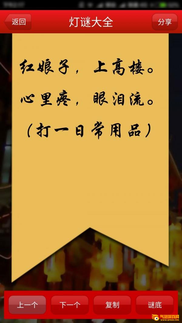 灯谜app收集了大量的灯谜,丰富了元宵节的娱乐活动。喜欢在灯笼上解灯谜的小伙伴可以直接下载灯谜app来猜。