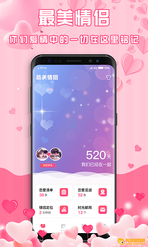 最美情侣app是专门为情侣设计的手机应用,为情侣提供在线记录和私密互动空间。最美情侣软件的核心功能是帮助情侣降低分手风险,避免感情危机。在最美情侣app中,可以记录每天的恋爱时间,也可以使用最美情侣软件,使用纪念日、情侣定位、恋爱日记、恋爱清单等专属服务。