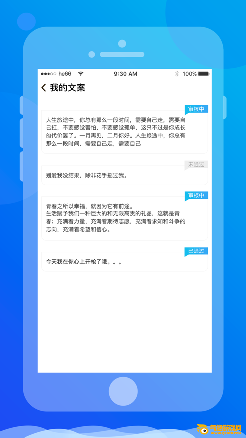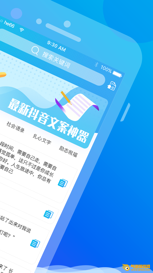 文案大师app是一款提供流行文案百科的应用。文案主软件满足用户文案需求,涵盖内容广泛。用户可以随时搜索最新的热门文章,文案大师可以自己上传句子。