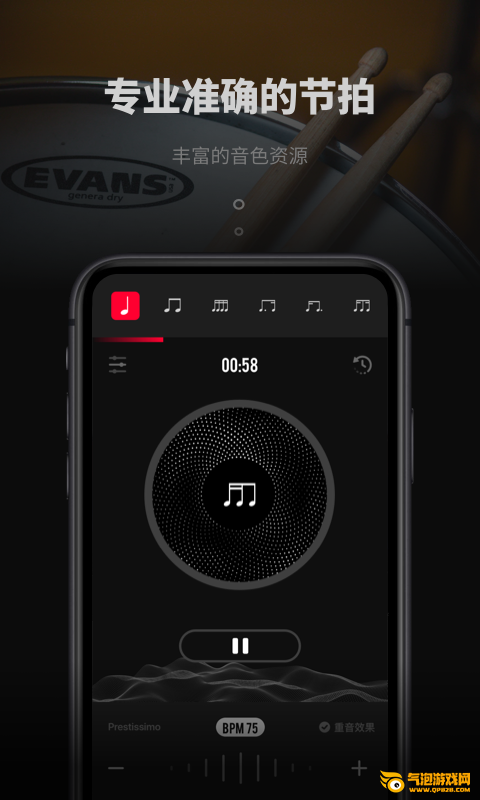 极简节拍器是专业人士开发的,专门为音乐爱好者设计的APP。软件界面沉稳,产品功能丰富。是理想的乐器学习伙伴,简单的节奏大师。