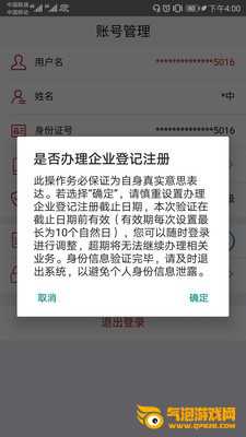验证通过后,在注册认证app的账户管理界面设置是否申请工商注册和有效期的选项。如果选项设置为“是”,并且在有效期内,您可以继续申请注册。