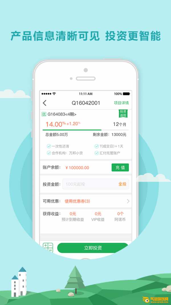 1.低门槛高收益:100元开始投资,年化收益9%-14%;