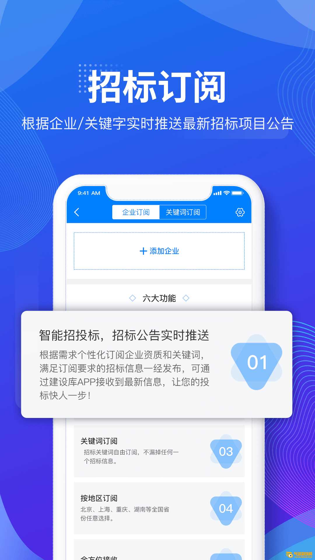 3.竞价订阅——为用户提供建筑行业竞价信息的个性化订阅服务。用户只需要设置竞价关键词。一旦发布符合订阅要求的竞价信息,用户就可以第一时间收到通知。