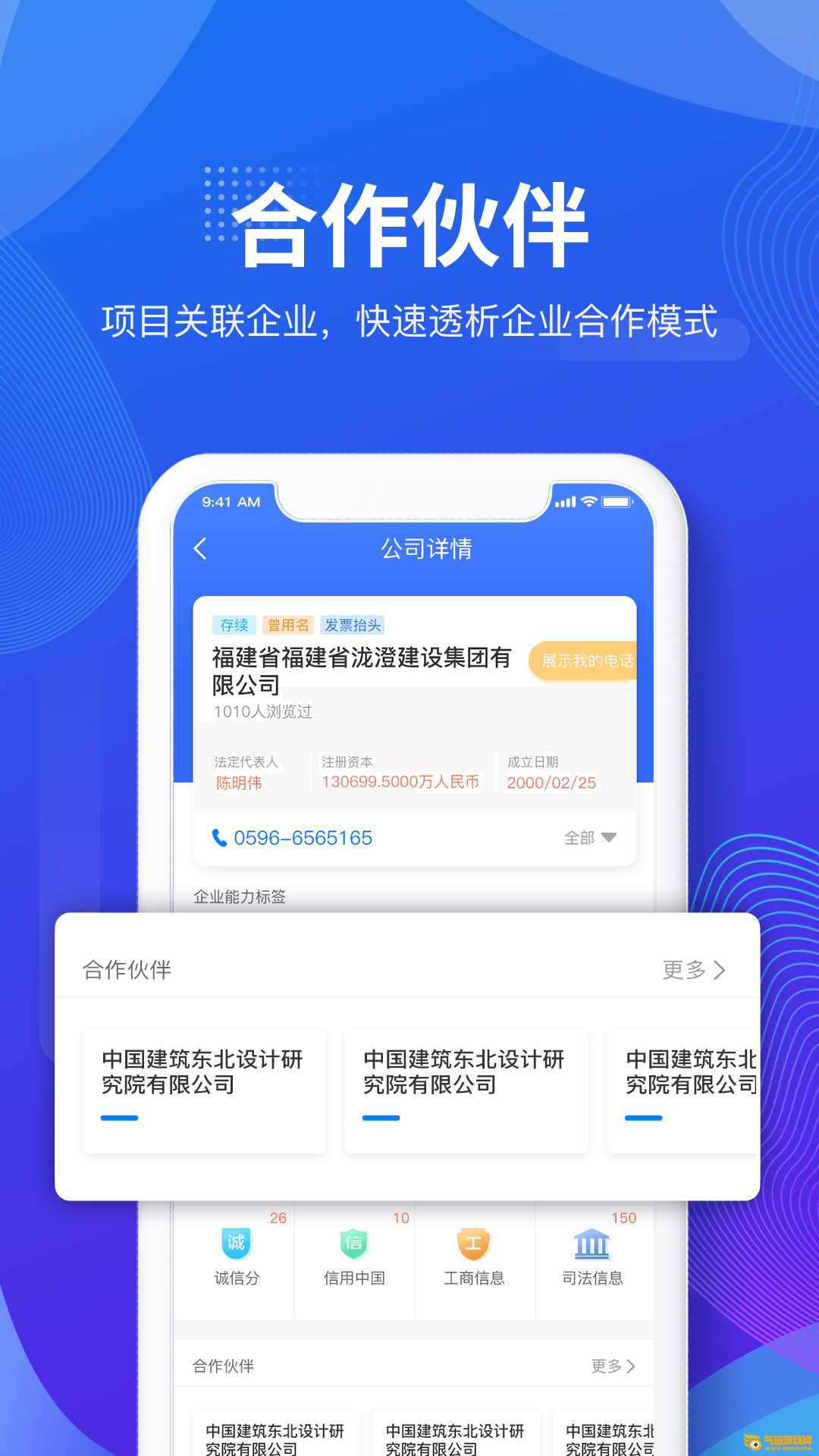 2.信用评价——基于海量的企业信息库,利用建筑行业独有的企业信用评价模型,可以快速生成任何建筑企业的风险评价报告。