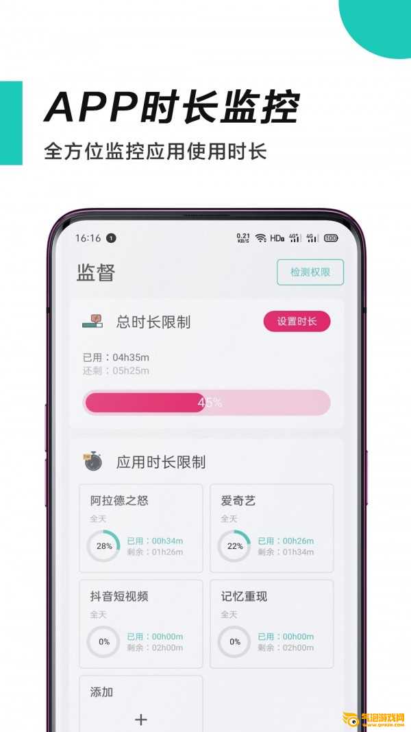 它可以在可能的情况下监控你每个软件的使用时间,这样你就可以控制每天软件的使用时间,避免过度沉迷游戏和短视频。