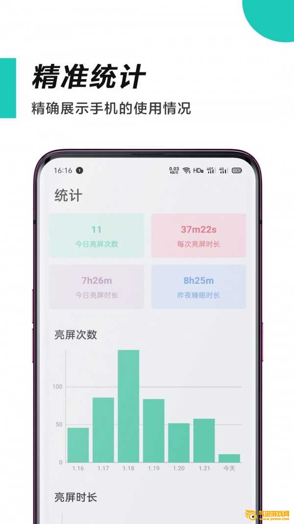 最长锁屏时间:除了睡觉不碰手机的最长时间。