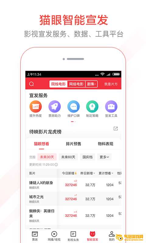 猫眼票房分析app是一款非常专业的票房分析软件。猫眼票房分析专业版提供每部电影的实时票房统计,还可以根据各种原因从各个角度分析电影质量!