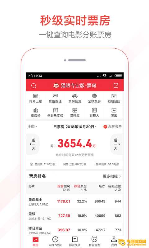 2.二级实时票房:二级实时票房查询工具,每分钟掌握电影市场实时动态;