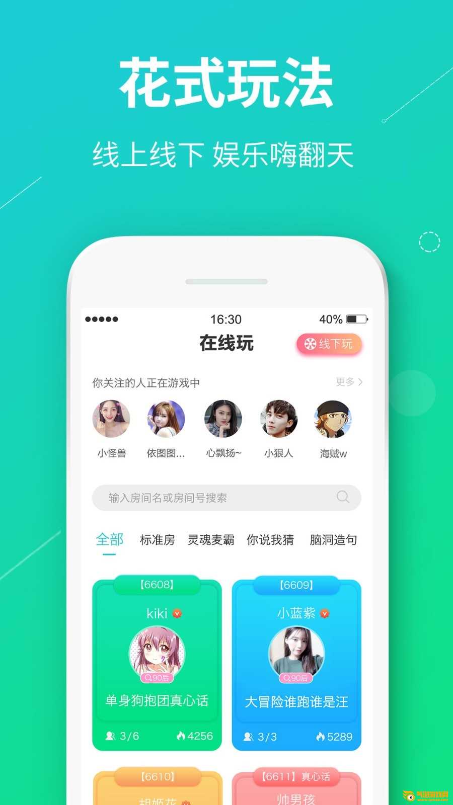 《真相冒险》的新奇、皮囊和刺激,在底线边缘疯狂试探却从未越界;跟上时下流行的“造字造句”综艺游戏,感受脑洞大开的魔力;敞开心扉,检验“你说我猜”的默契,看看谁是智能卡.等等.给你带来网上聚会、聚会、交友、聊天的快乐新鲜体验。