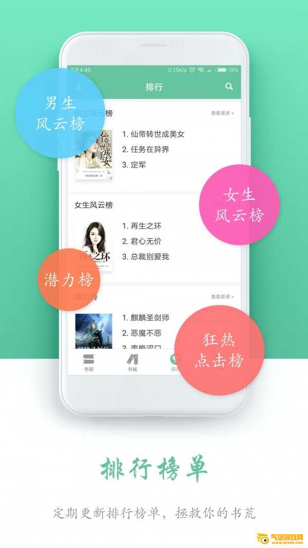 3.书店定期推荐男生女生喜欢的书目,定期更新排行榜列表,拯救你的书荒;