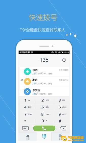 快速拨号:T9/全键盘快速查找联系人,最智能的拨号软件。