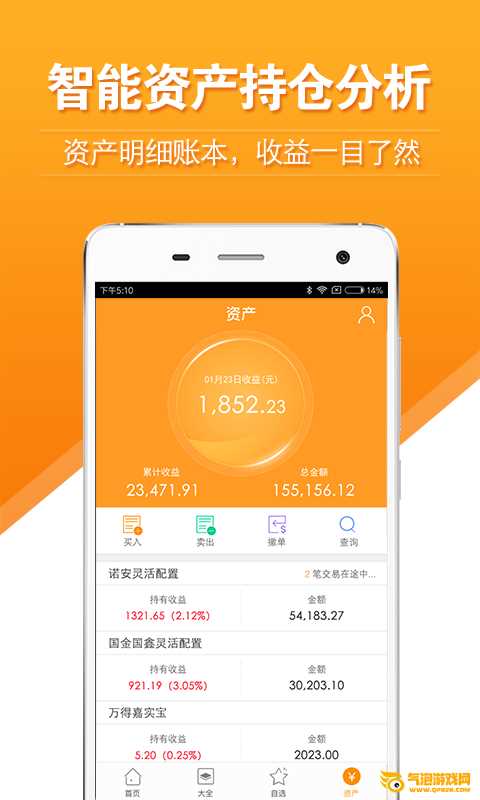 6.资产收益分析:随时管理交易账户,跟踪投资收益,查询交易订单,轻松掌控自己的金融生活。