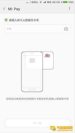2.输入银行卡账号交易密码、手机号验证完成(注意:处理后会自动跳转到小米钱包的银行卡列表中,通过列表可以看到闪付卡)