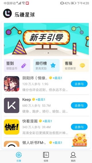 乐赚星球app是一款简单的赚钱软件,满足了大家躺着赚钱的梦想。乐赚星球app通过大数据为大家挑选了几种喜欢的赚钱任务类型,只需一部手机就可以在乐赚星球app上赚钱!