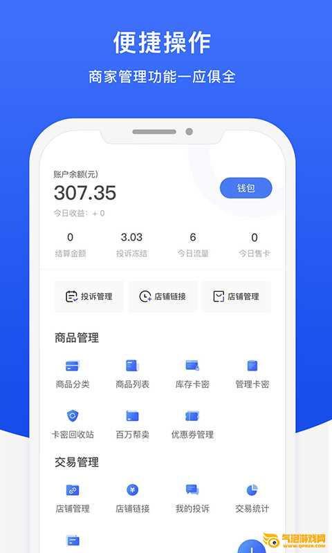 快速发卡app是一款游戏虚拟商品全自动寄售平台,致力于解决游戏虚拟商品的快速寄售服务,为商家及其买家提供便捷、绿色、安全、快捷的销售和购买体验。是快速发卡平台的核心思想。在新时代,我们拒绝等待。