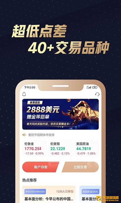 品类齐全:40个交易品种,金银原油指数应有尽有。