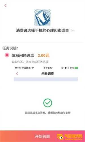 分问卷App是新推出的一款可以通过回答问卷赚钱的软件。我们可以在分问卷App上购买很多网赚信息,也可以在分问卷APP上获得很多网赚任务,比如马上支付佣金,邀请好友获得奖励等。该软件安全可靠。