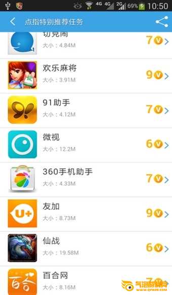 点之金手机赚钱威客是一款基于智能手机的手机赚钱威客平台。点之金手机赚钱威客让用户在完成安装体验应用、试用、推荐应用等任务的同时,获得q币、现金或手机通话奖励。点城金手机赚钱威客应用平台承接了国内安卓市场大量的优质应用和游戏资源,是集生活娱乐为一体的系列移动应用威客任务平台,涵盖主流生活、休闲娱乐、在线影音、即时聊天、网恋、单机游戏、网络游戏、团购、网上商城等。通过严格的筛选和准入机制,保证了威客任务平台的任务质量,给用户带来了完美的体验。