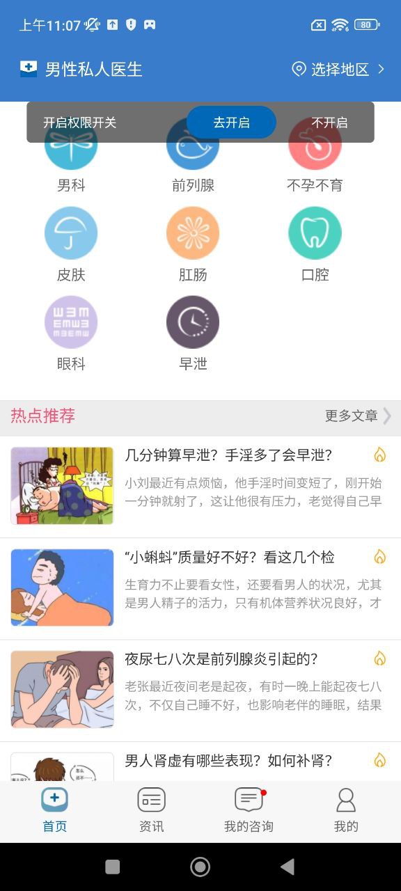 2,科室齐全,男科健康,口腔,皮肤等不同科室可咨询,用户按需选择。