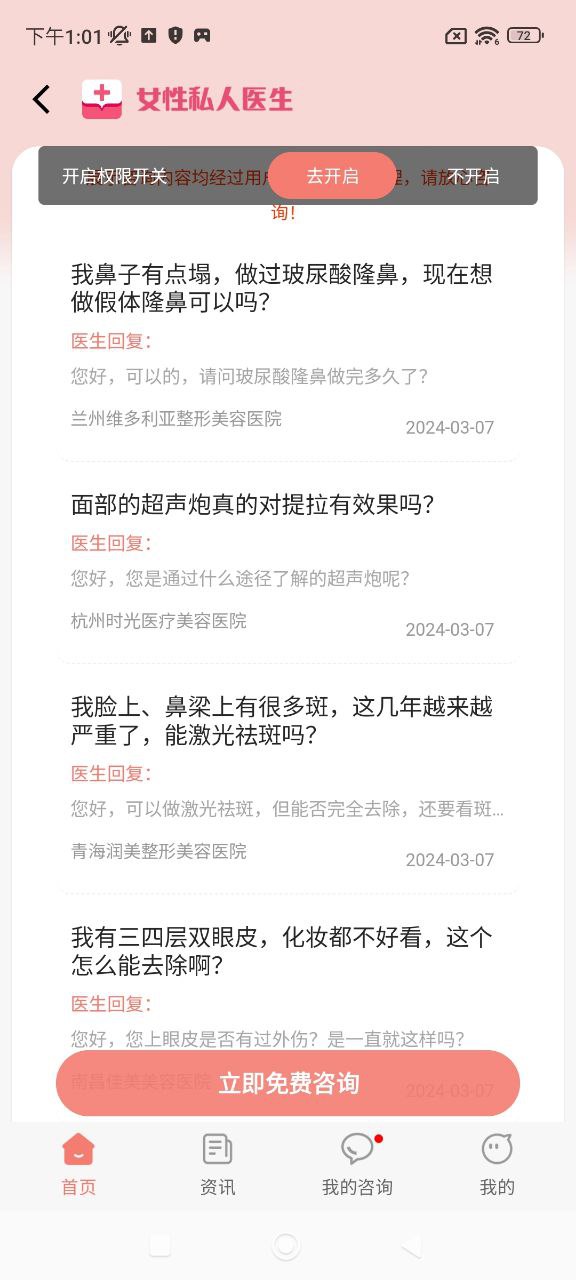 1、提供妇科,美容等多个专科科室发布咨询。