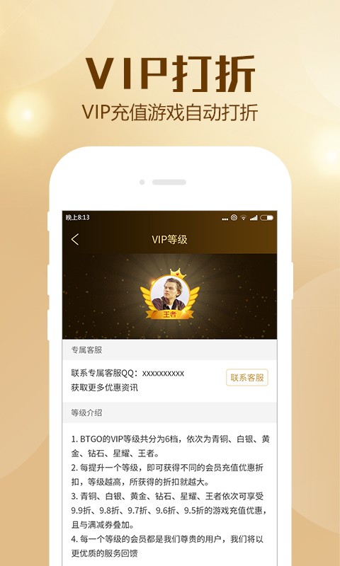 2、盒子内达到对应VIP等级,可自动打折,比如充值100元,只需支付95元;