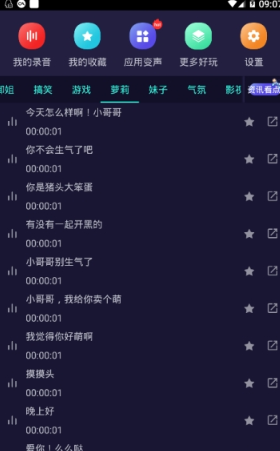 拥有男声、女生、萝莉、老人、机器人等效果,还支持用户自定义切换各种变声效果