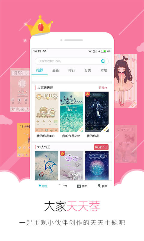海量精美主题:网红明星、美女萝莉、直播大咖、可爱喵汪、鲜肉大叔、老九门、余罪、青云志、幻城、微微一笑很倾城、盗墓笔记、致青春、TFboys、李易峰、吴亦凡、鹿晗、陈伟霆、赵丽颖、张艺兴、杨洋、薛之谦、宁泽涛、张继科、主题桌面应有尽有!海量主题免费下载,总有一款适合你!