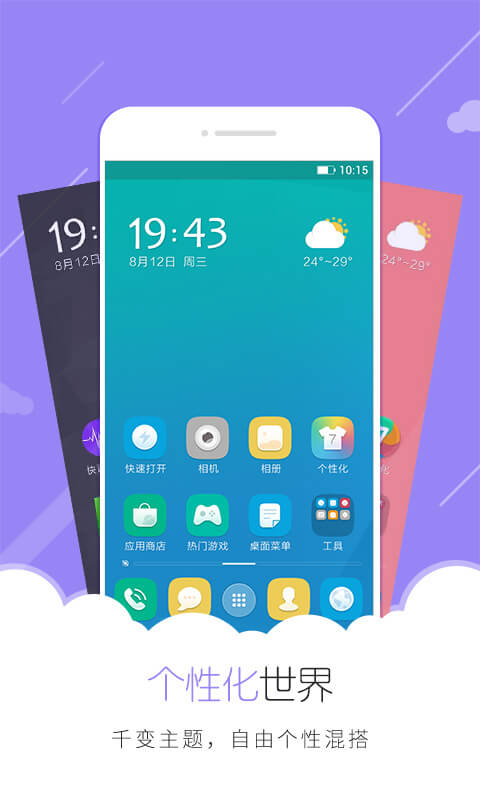 百变锁屏、缤纷主题、3D划屏特效、个性字体、动态壁纸、炫动铃音、海量个性内容随心搭配,更有一键轻松换壁纸、时尚摇摇换主题一起玩转手机新奇趣。