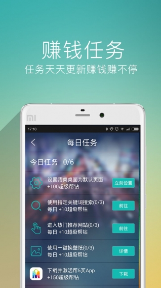 我桌app是一款桌面美化,而且还能赚钱的软件,我桌app支持多种桌面优化,主题美化,而且还能通过完成任务获得帮钻,然后可以用来网上购物哦。我桌,就是这么有个性!快来游戏500下载站下载体验吧!