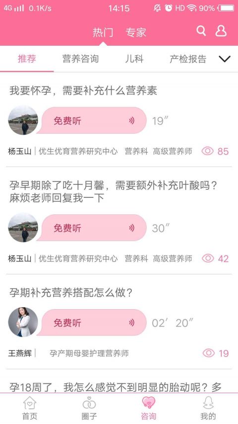 【问专家】汇聚经验丰富的医生、营养师等专业人士,规定时限内为您提供一对一科学、专业的个性化咨询服务。