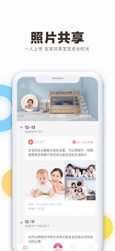 一人记录、全家共享,凝聚整个家庭的关爱,成长陪伴不孤单。