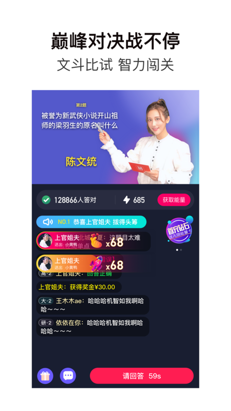 每天都能参与答题,智力闯关来证明实力。