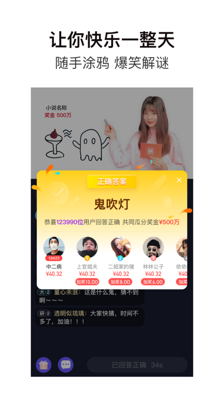 答对就能瓜分现金大奖,奖金拿到手软;