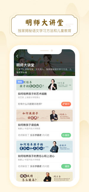 明师高徒苹果版是一款专为儿童打造的语文相关知识在线学习app,拼音学习汉字认知古诗歌朗诵点读等多种功能,名师课堂智能学习。快来游戏500下载站下载吧!