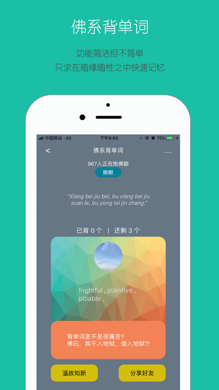 于是乎,佛系背单词横空出世,让那个优柔寡断摇摆不定容易放弃的你,从此之后拥有在不经意间随缘随性学习英文单词的绝佳机缘。